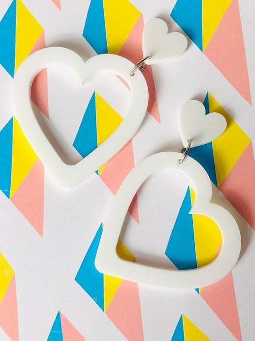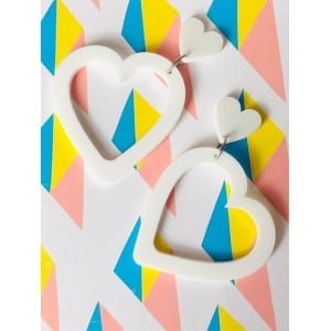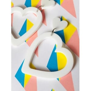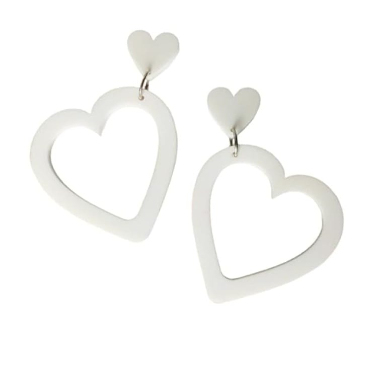 Acrylic Heart Drop Earrings – White - Nupur Gifts
