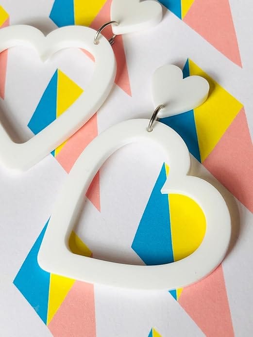 Whether you want to express your love or simply elevate your style, these white acrylic heart earrings are the perfect accessory.