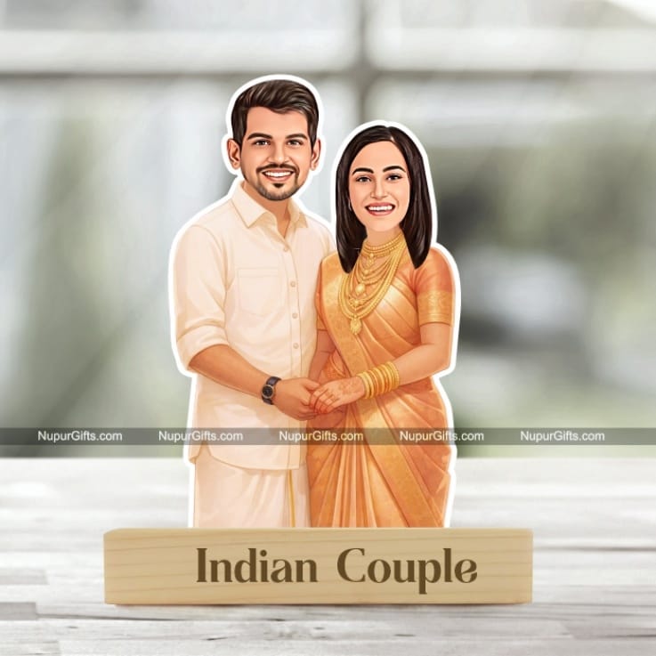 Custom Indian Couple Caricature Standee – Personalized Cartoon Gift for Couple