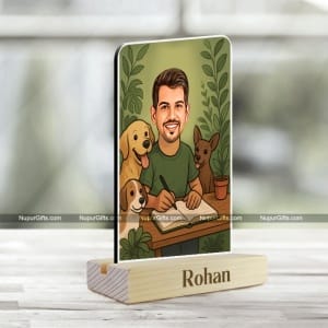 Turn your memories into a unique artistic keepsake with this Custom Pet Lover Caricature Standee, a beautifully illustrated personalized cartoon portrait created from your photo. This custom caricature features a male character surrounded by pets, making it an ideal gift for animal lovers and pet owners.