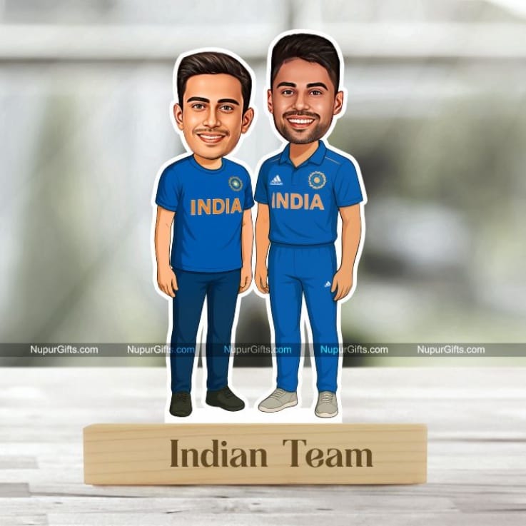 Celebrate your love for cricket with this Personalized Suryakumar Yadav Caricature Photo Stand – the ultimate tribute to fans of Team India! Get your cartoon avatar standing alongside Suryakumar Yadav, wearing the iconic Indian cricket jersey, captured in a playful, high-quality caricature format.