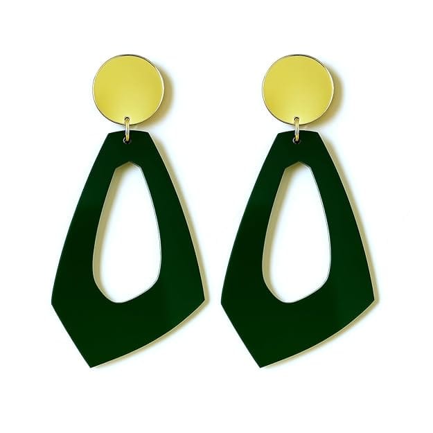 Green & Gold Geometric Acrylic Earrings