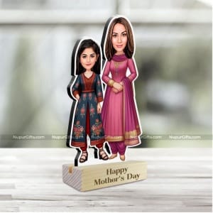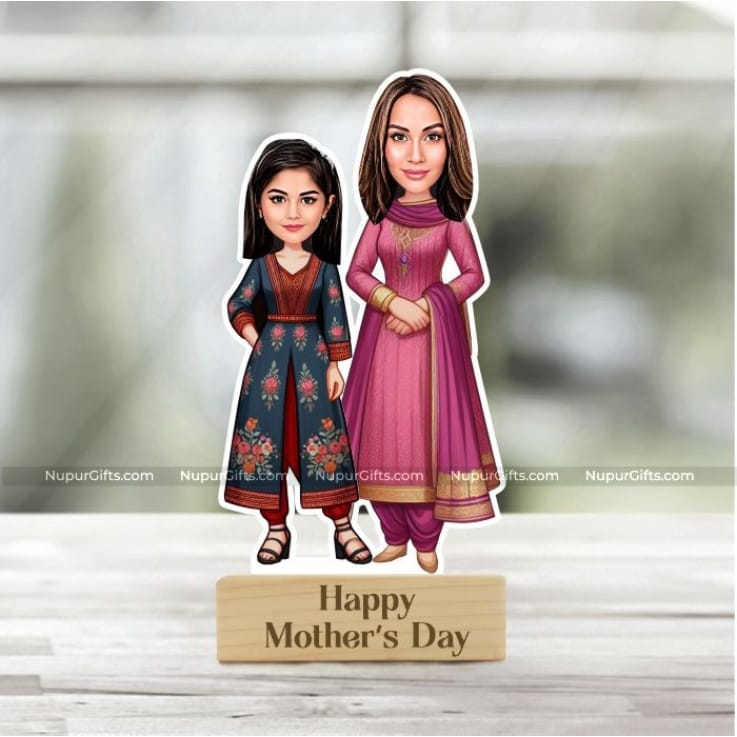 Mother-Daughter Caricature Stand | Personalized Cartoon Photo Gift for Mother’s Day