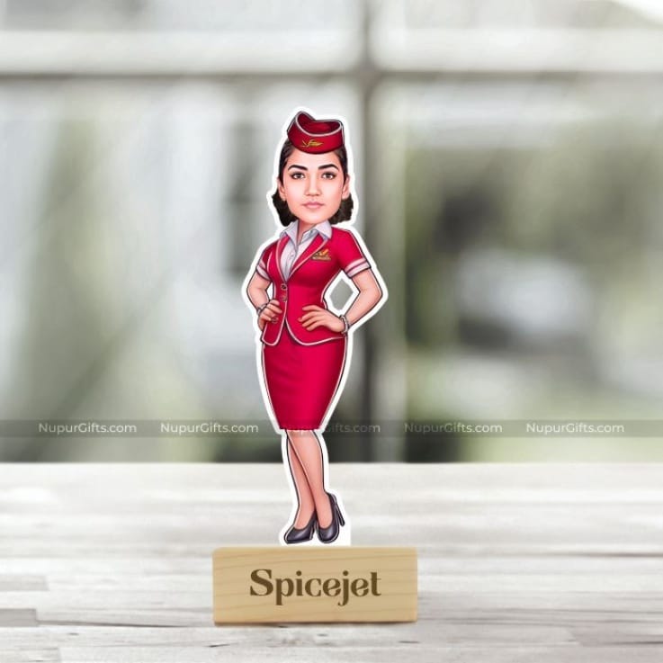 Surprise your favorite cabin crew member with a quirky personalized caricature stand! A perfect aviation-themed gift for air hostesses and flight attendants.