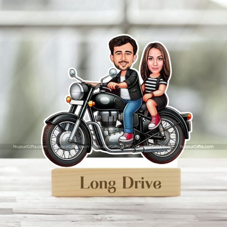 Personalized Couple Bike Ride Caricature – Long Drive Photo Stand Gift - Nupur Gifts