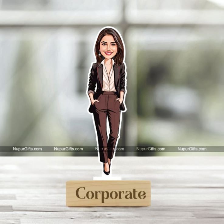 Personalized Female Corporate Caricature – Photo Stand Gift