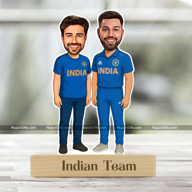 Hardik pandya with this Personalized Caricature Photo Stand, a perfect tribute for fans of the Indian cricket star. Featuring you or your loved one as a cartoon-style caricature standing proudly beside Hardik pandya, this fun and unique keepsake is sure to score big as a gift or collectible!