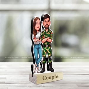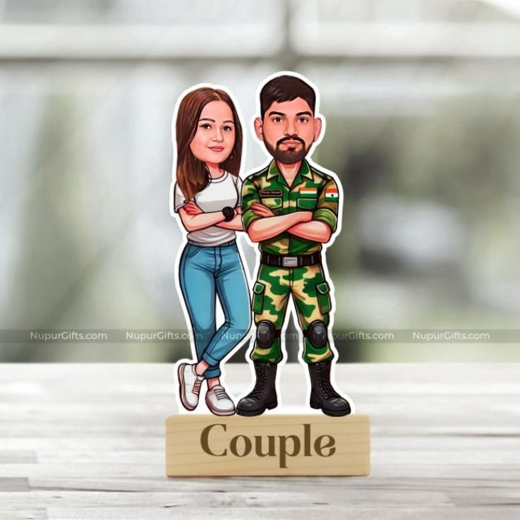 Personalized Indian Army Couple Caricature – Photo Stand Gift - Nupur Gifts