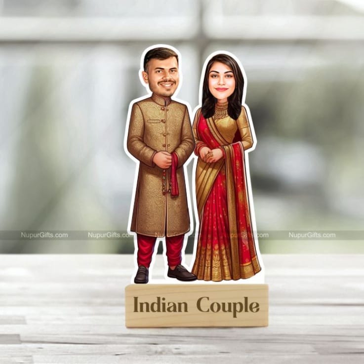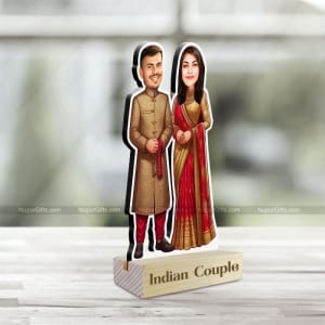 Personalized Indian Couple Traditional Caricature – Photo Stand Gift