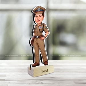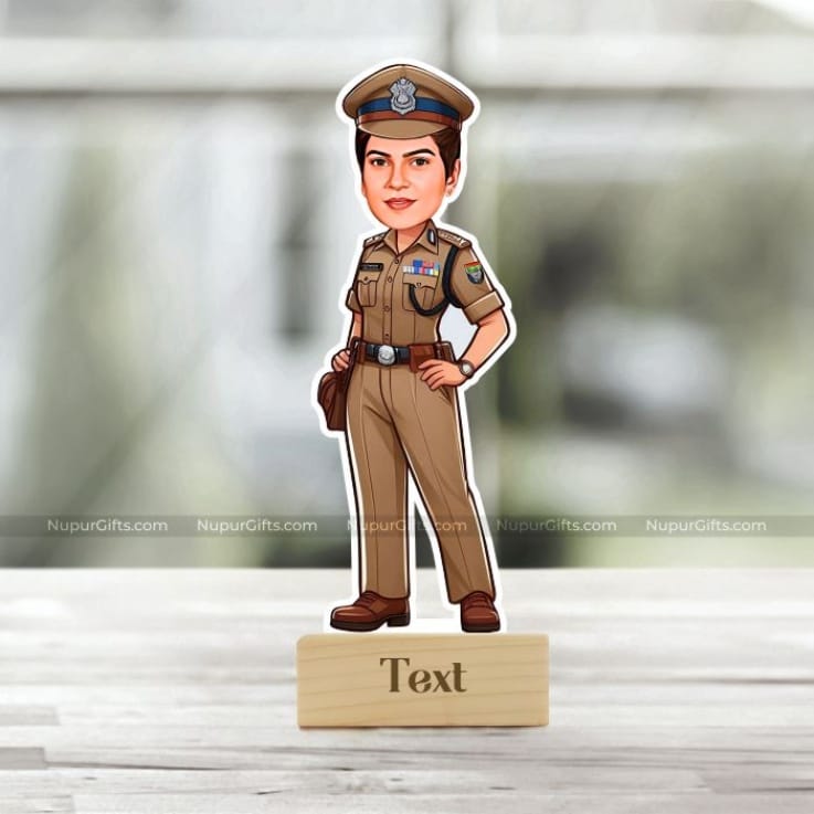 Personalized Lady Police Officer Caricature – Custom Cartoon Photo Stand Gift