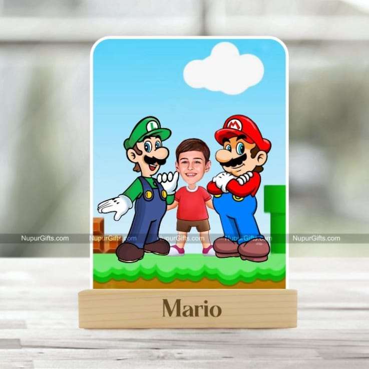 Personalized Mario Caricature – Kids Cartoon Photo Stand Gift