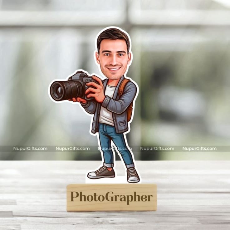 Personalized Photographer Caricature | Custom Photo Stand Gift for Camera Lovers - Nupur Gifts