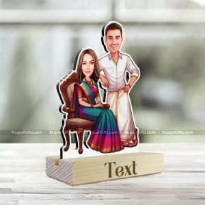 Personalized South Indian Couple Caricature Photo Stand Gift