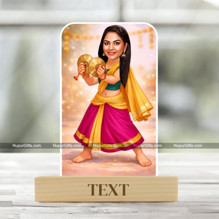 Bring creativity and personalization to your gifting experience with this Traditional Indian Dance Caricature Standee, a beautifully designed custom cartoon artwork that transforms photos into vibrant caricatures. This personalized caricature features a female character in traditional attire holding musical instruments, making it a perfect decorative piece, memorable gift, or event keepsake.