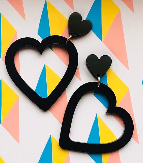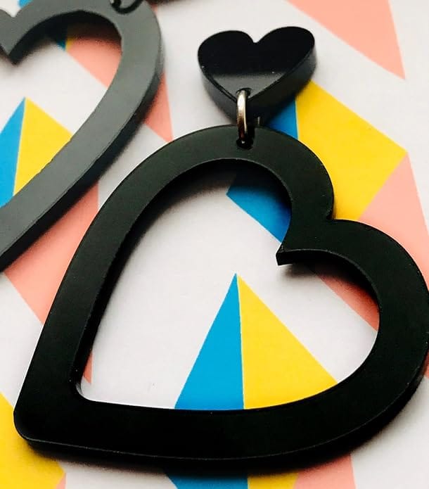 Trendy Black Acrylic Heart Earrings - Nupur Gifts