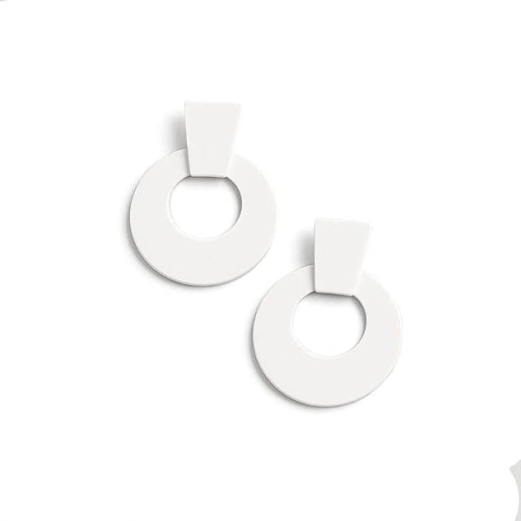 Sleek, stylish, and versatile—these White Circle Acrylic Earrings are a perfect blend of modern design and timeless elegance. Featuring a bold circular cut-out design with a geometric stud, these earrings add a chic finishing touch to any outfit.
